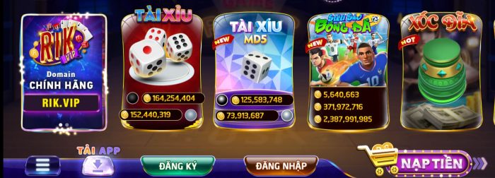 Rik88 mang đến cho người chơi một thế giới giải trí nổ hũ đổi thưởng phong phú với nhiều loại hình trò chơi hấp dẫn. Từ các tựa game bài truyền thống như tiến lên miền Nam, mậu binh, poker cho đến các trò chơi hiện đại như slot game, bắn cá hay cá cược thể thao, Rik88 đều đáp ứng một cách hoàn hảo. Kho trò chơi tại đây được cập nhật liên tục, đảm bảo mang lại sự mới mẻ và thu hút cho người chơi.